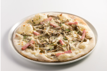 地元魚沼産きのことニンニクがたっぷりとのった魚沼ピッツァです。