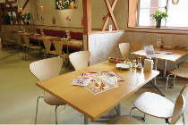 店内のスイーツエリアを抜け奥には石窯焼ピッツェリア&カフェスペス「ラ・テッラ」があります。お食事にティータイムにごゆっくりご利用ください。
